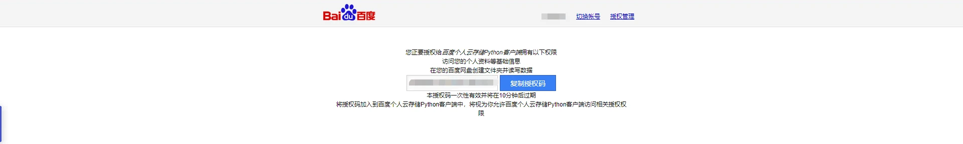 ②获取百度网盘的授权码,复制打开链接